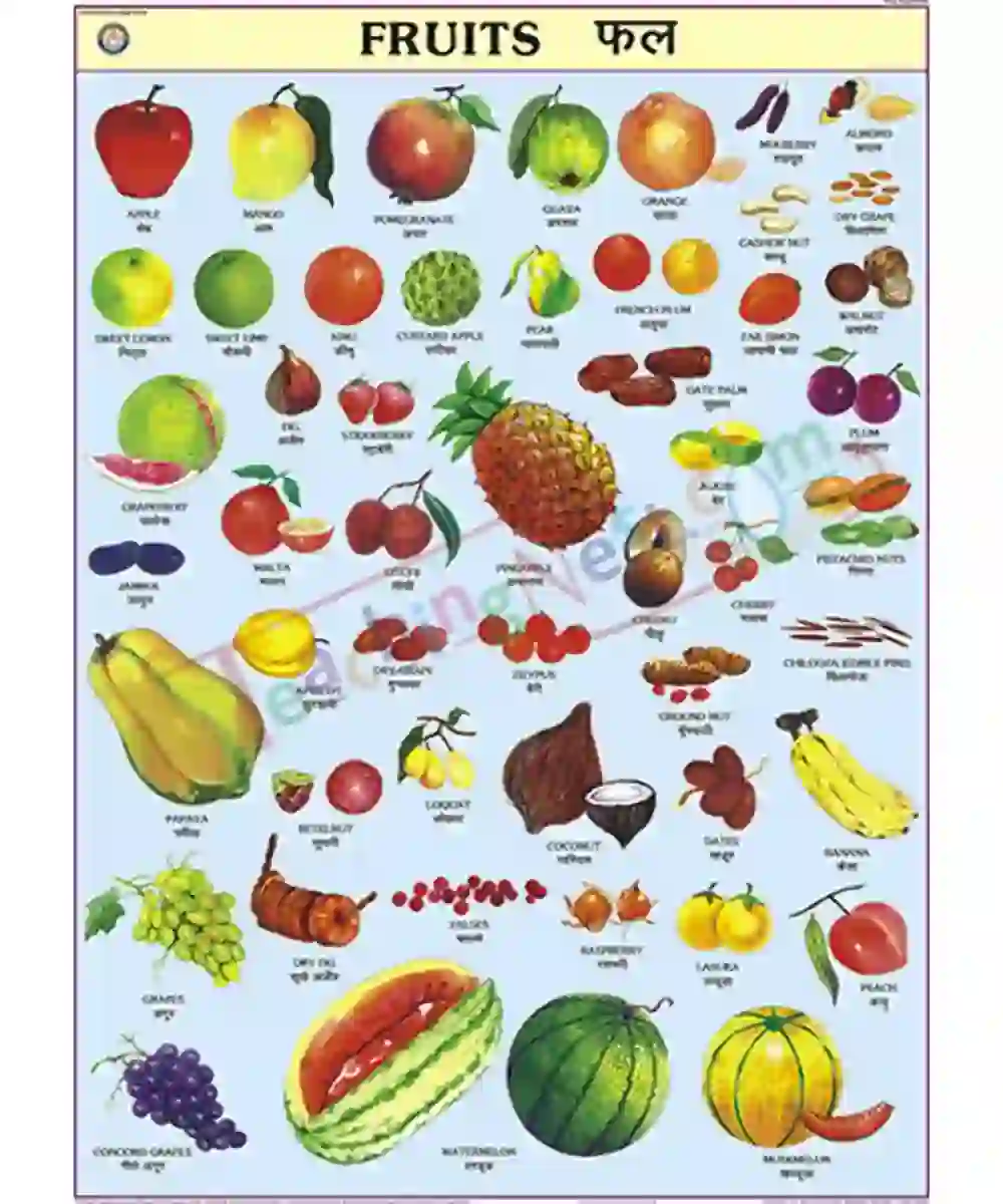 Fruits Chart – Laminated, Wall Sticking, 70×100 cm, English and Hindi Combined